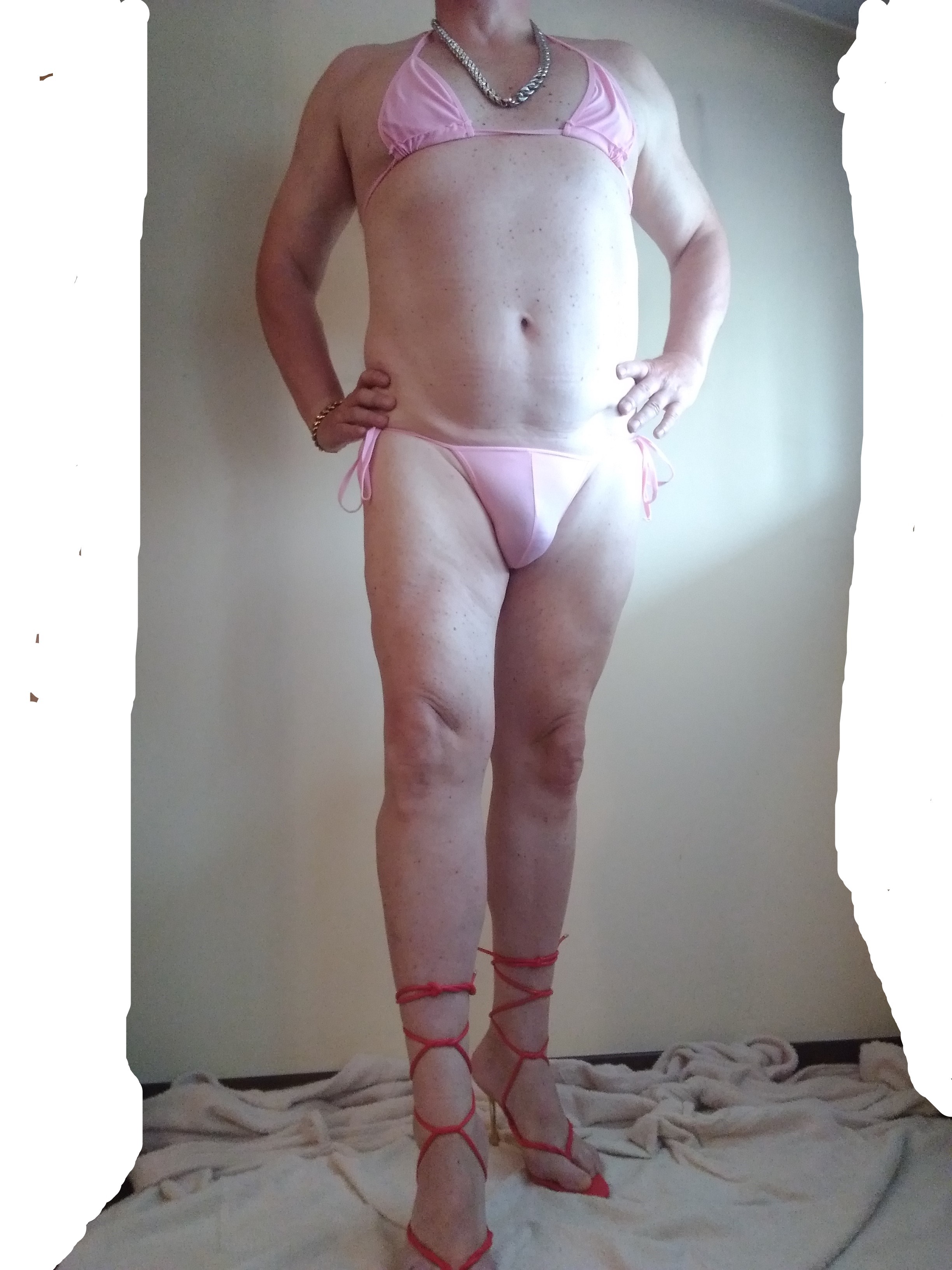 Ho un bel seno, cosce lunghe e dei capezzoli turgidi, allora perchè non indossare un due pezzi facile da slacciare ? Vorrei essere una brava puttana e questo mi sembra l'abbigliamento giusto, ma forse dovrei togliermi tutto e tenere solo le scarpe con i tacchi a spillo, che ne dite ?