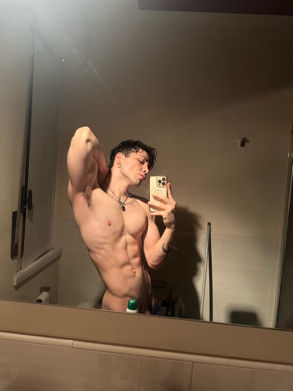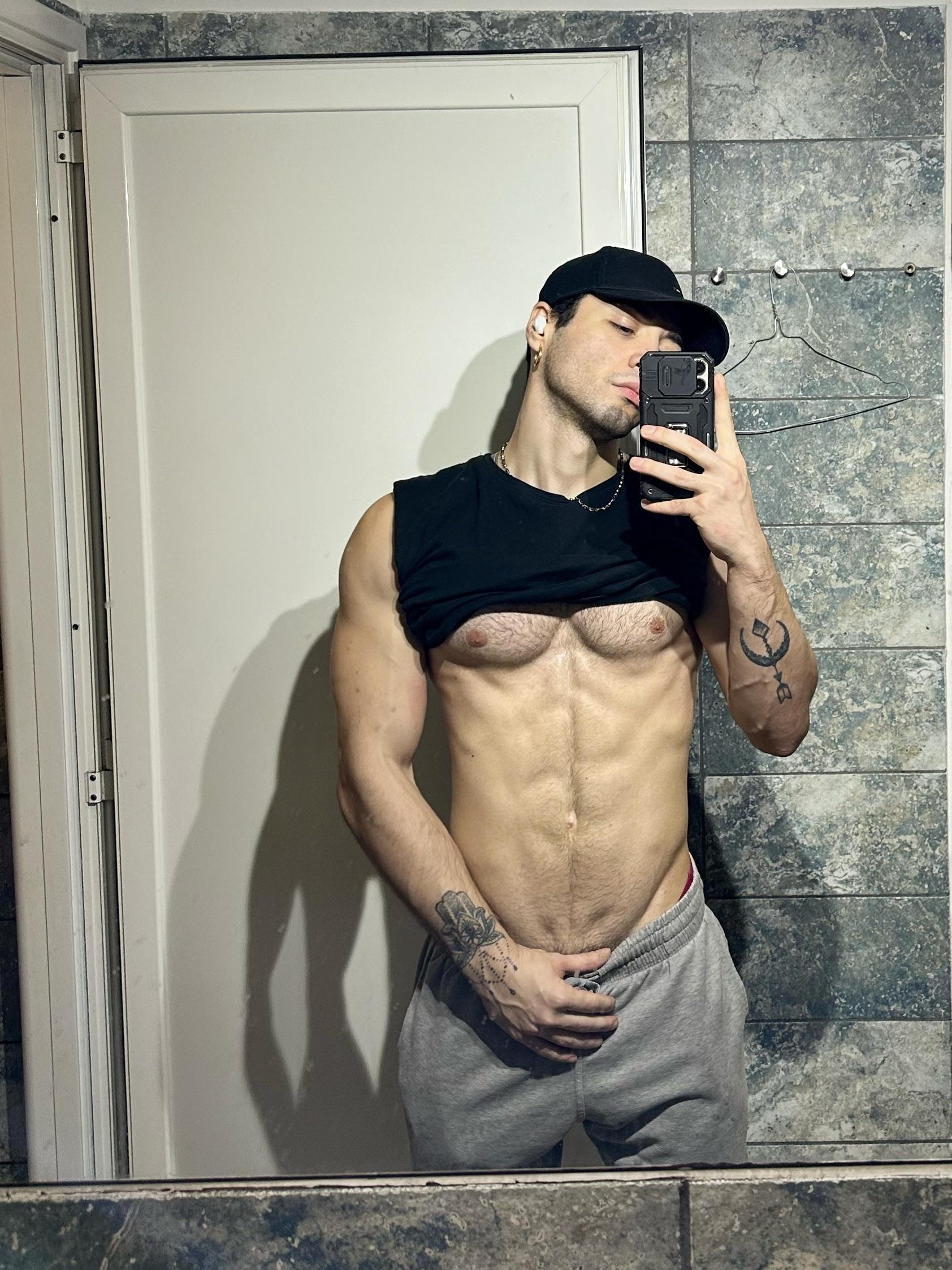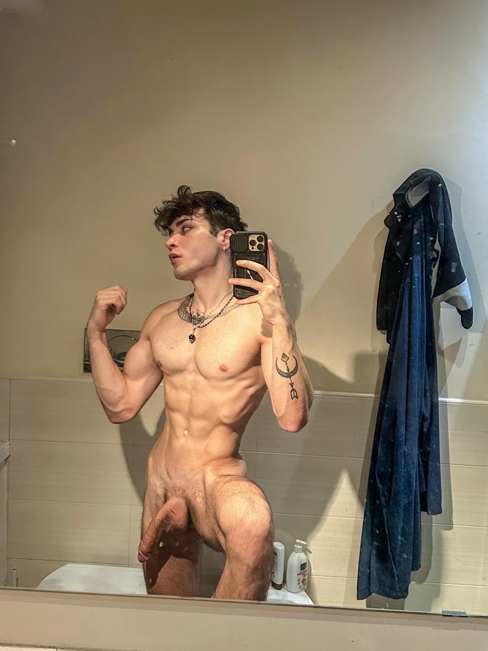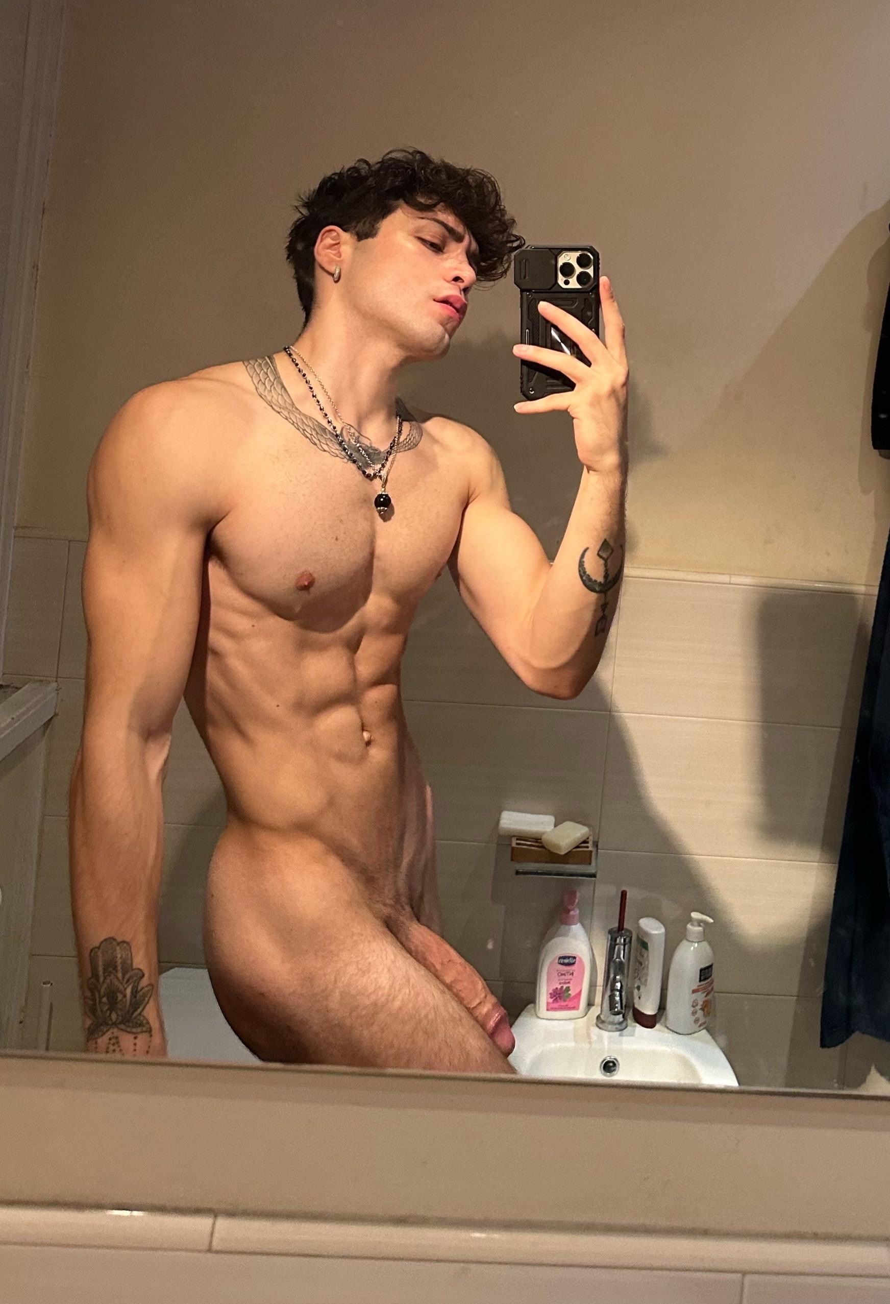 Antonio italiano mostra un cazzo enorme non circonciso: spesso, lungo, venoso, con prepuzio abbondante che scivola indietro lentamente. Lo impugna con orgoglio, pronto a farti impazzire di desiderio.
