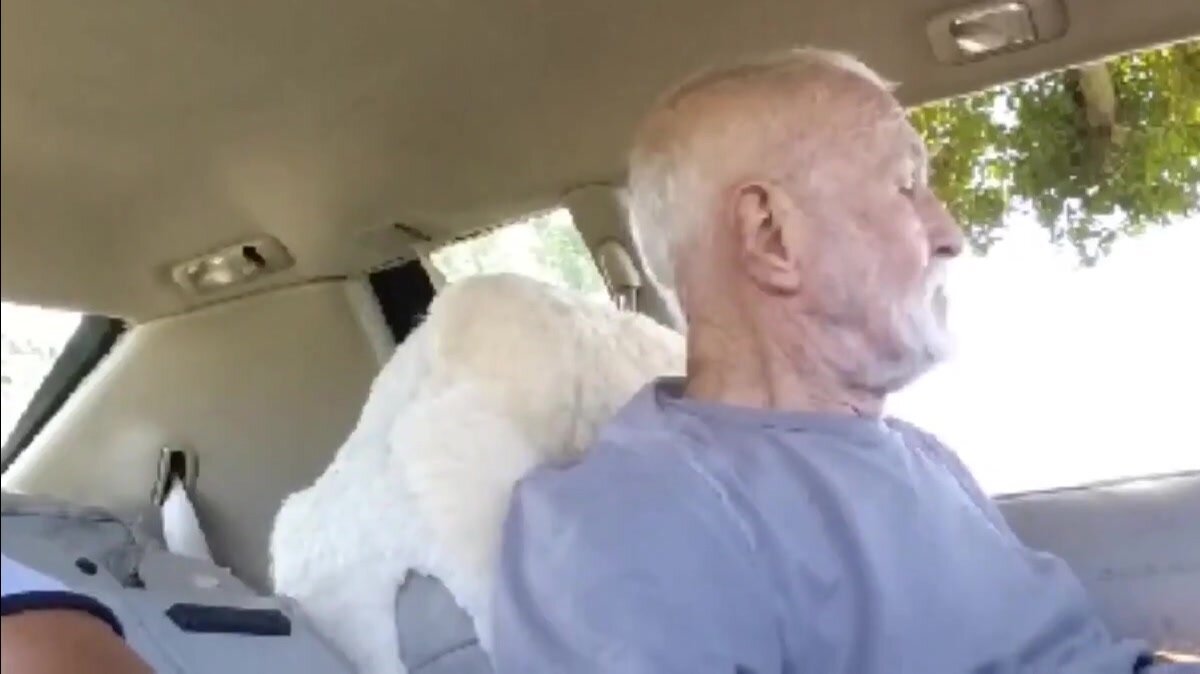 Il nonno succhia all'aperto nella sua macchina