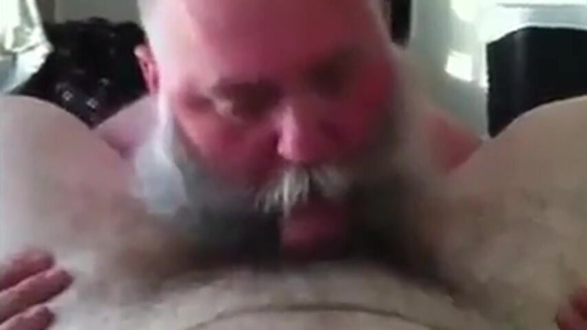 Papà barbuto succhia un grosso cazzo