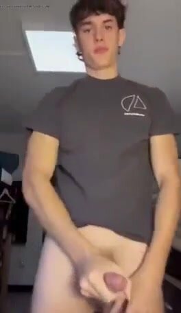 Muscoloso britannico mostra il corpo scolpito e il cazzo grosso in live webcam, si masturba fino a venire forte.