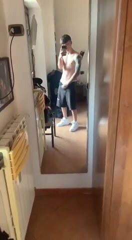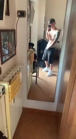 Twink Italiano Tatuato si Sega il Grosso Cazzo