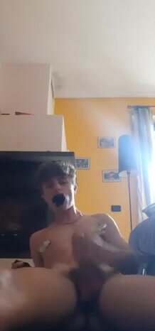Ragazzo italiano arrapato si mostra in webcam, cazzo duro e mano che non si ferma. Twink horny leakato che ama farsi vedere.