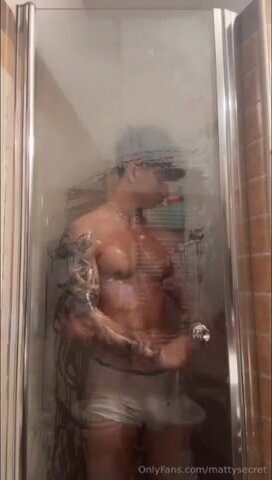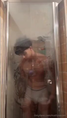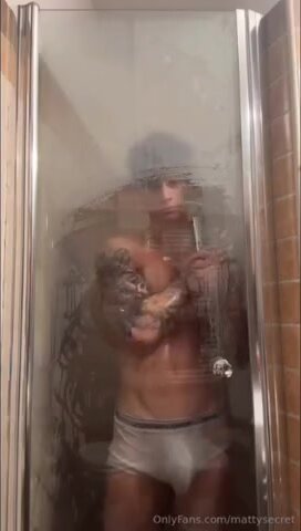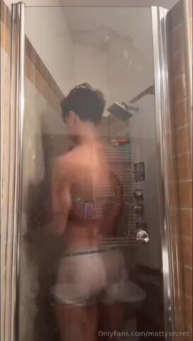 Mattia Gallettini nudo sotto la doccia con cazzone
