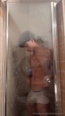 Doccia nuda con Mattia Gallettini e il suo cazzone gonfio che gocciola. Scene da maiali!