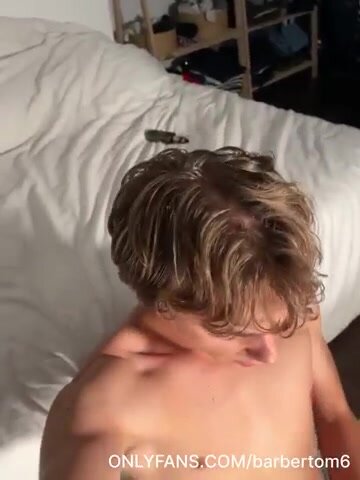 Il biondo francese carino Tom Barber si masturba sul letto fino a sborrare, un bate gay con accenti europei seducenti.