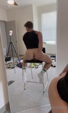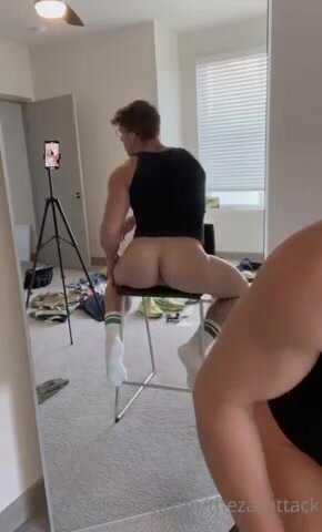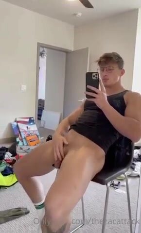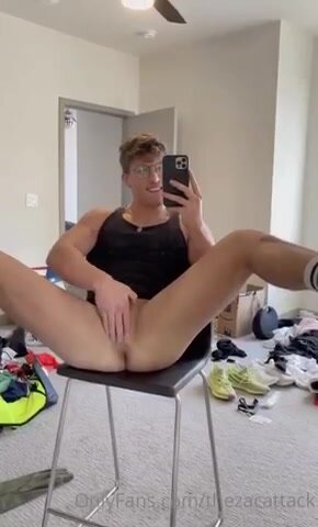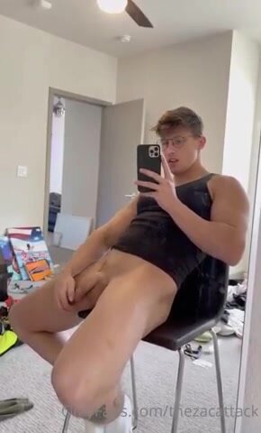 Biondo nerdy e fit carino si spoglia nudo, mostrando il suo corpo atletico in un video gay di esibizionismo sensuale.