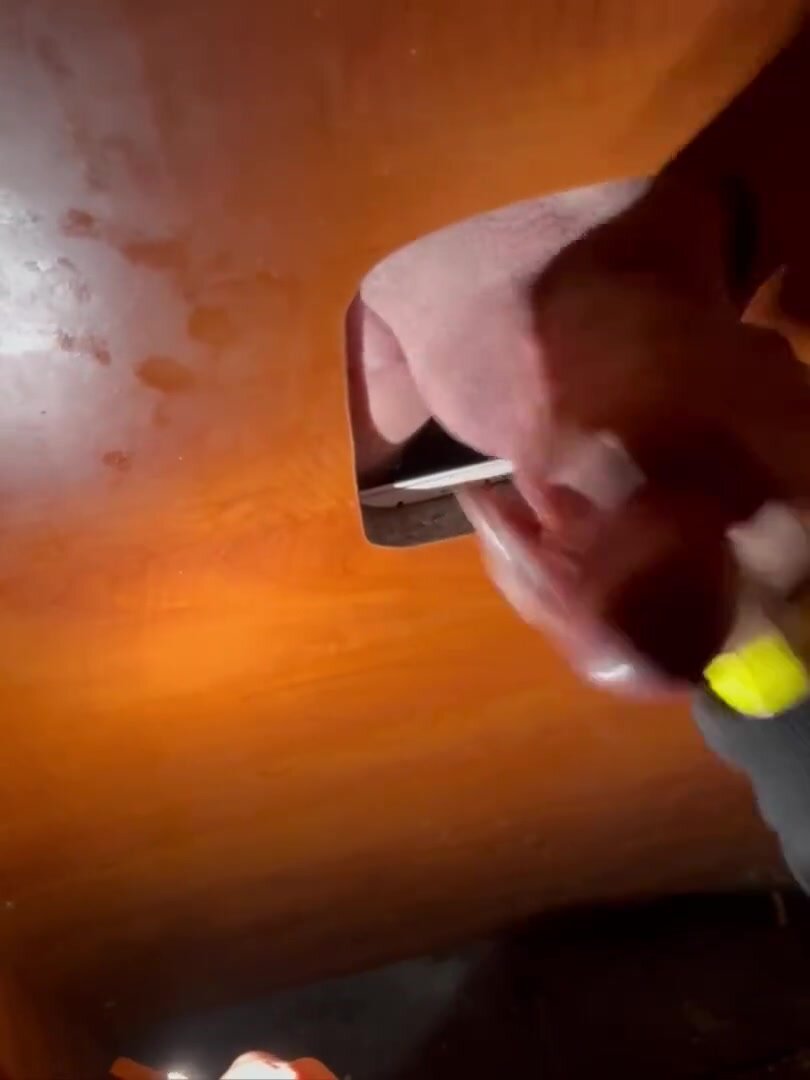 Frocio segaiolo si dedica abilmente a svuotare con una sega le palle fonfie di sborra di un fortunato porcellone omosessuale.