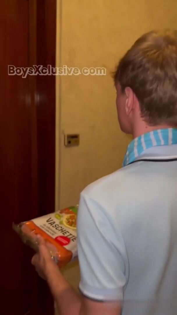 Il biondino effemianto vende biscotti porta a porta quando sul più bell osuonando ad un interno si trova davanti un gruppo di maschi tutti nudi col cazzo in mano, rimasto senza fiato alla vista di così' tanti cazzi si ingnocchia subito per succhiarne quanti più riesce e poi viene inculato a turno da tutti.