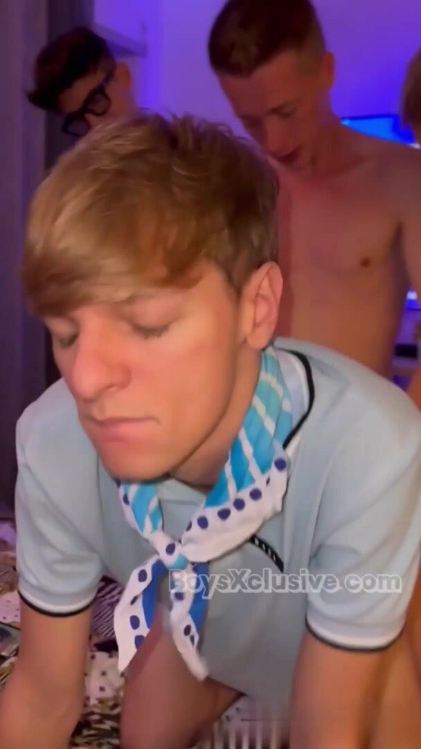 Biondino gay straniero scopato a turno dai cazzi di un gruppo di amici italiani