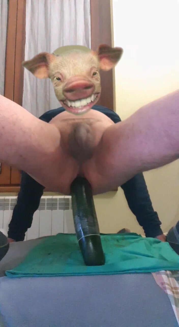 Avevo voglia di sfondarmi il culo con un bel cazzo grosso, in mancanza mi sono accontentato di una bella grossa zucchina, che mi ha fatto godere come una troia in calore