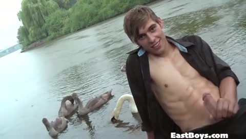 Ragazzo carino muscoloso si fa masturbare il grosso cazzo dal compagno in un'incantevole cornice sotto una fresca pioggerella estiva...godetevi questa scena di sesso omo outdoor!