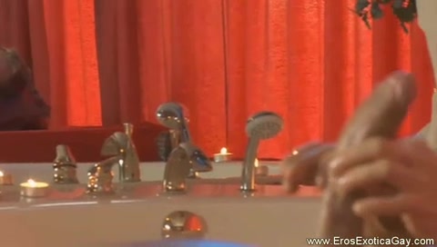 Gran porco omosex si unge il corpo di oli e creme e poi con le mani comincia ad accarezzarsi lo scroto e le palle gonfie di sperma fino a sborrarsi addosso.