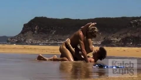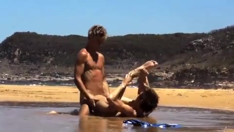 Giovane coppietta omosex fa sesso nell'acqua bassa. Un biondino attivo e un brunetto passivo si succhiano a turno il cazzo per finire con un'inculata.