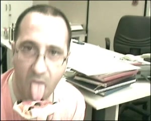 Pompino con sborrata in ufficio - italiano con gli occhiali succhia il cazzo del collega accanto alla scrivania, poi lo fa sborrare sulla sua tartina e la mangia deliziosamente soddisfatto