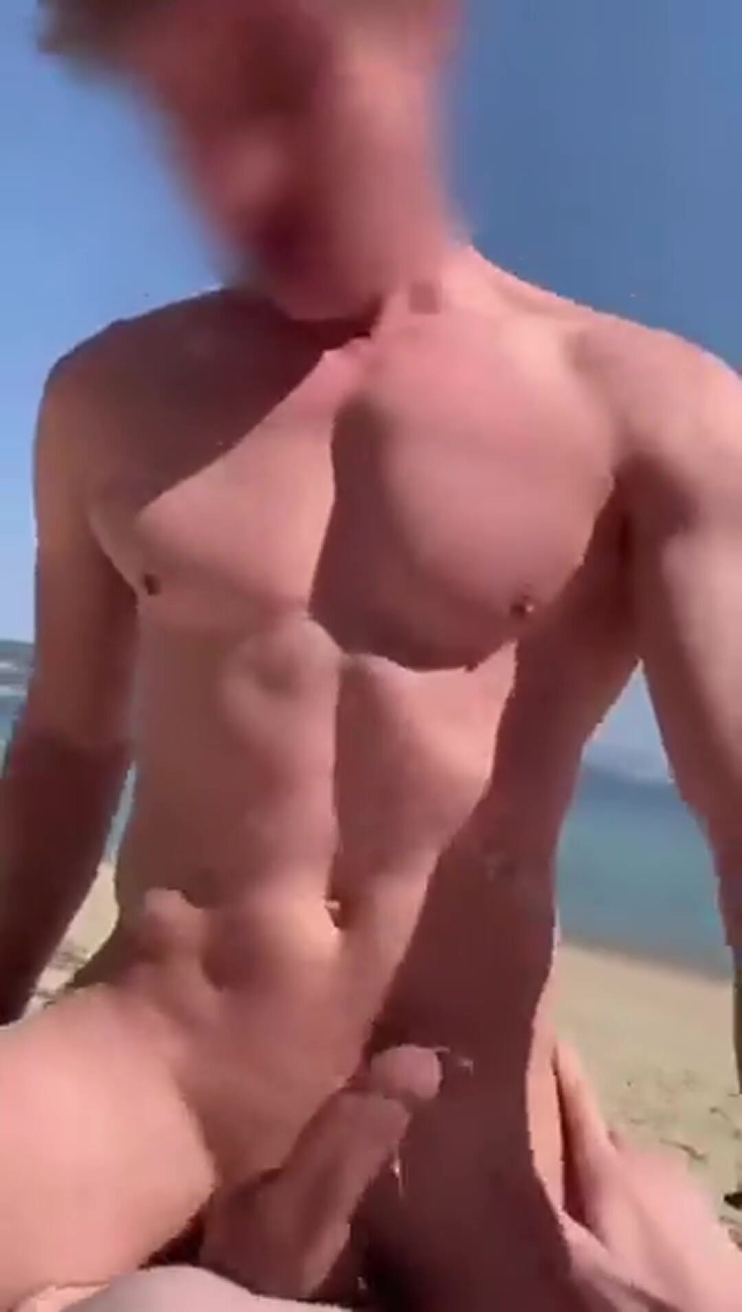Nudi in spiaggia i due fidaznati gay ci dann odentro di sesso anale. Incuranti di essere spiati il bel ragazzo passivo con il cazzo duro cavalca l'amico gemendo di piacere.
